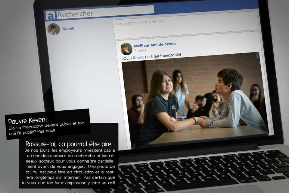 Faire rire pour ensuite…faire réfléchir. Une image vaut mille mots! Les élèves n'ont pas peur du ridicule et sont prêts à tout pour sensibiliser les autres concernant les nombreuses conséquences négatives du «sexting».